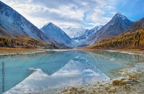 © Михаил Мюлинг, Naklejka premium Mountain lake in which the beautiful sky is reflected.