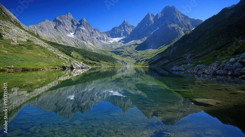 © adibaatmarini, Fototapeta premium Mountain Lake Reflection