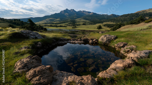 © BROPRADANA, Fototapeta premium Mountain lake reflection, tranquil scene, calm water, peaceful nature
