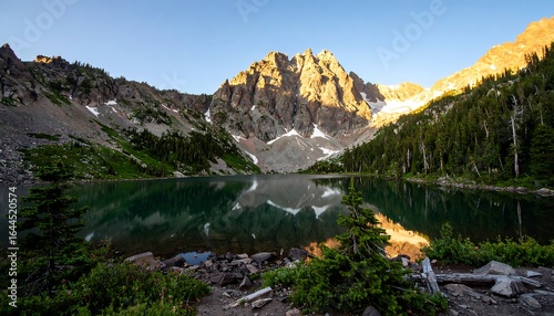 Obraz premium Mountain lake sunrise reflection