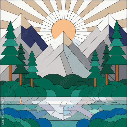 © Lowrel, Obraz premium Mountain Lake Sunrise Serenity