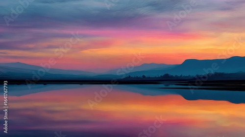 © nameera_juwairiya, Fototapeta premium mountain lake sunset reflection art