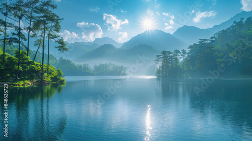 © nurissetiabudi, Fototapeta premium Mountain Lake Tranquility