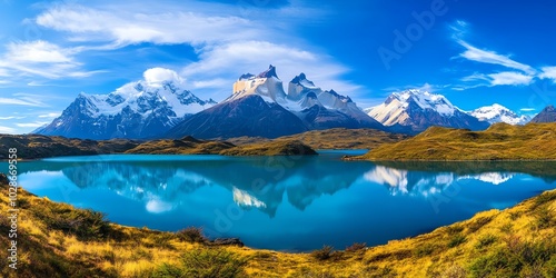 © Puchong, Fototapeta premium Mountain lake with blue water