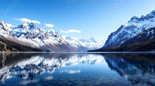 © ImagineInfinite, Fototapeta premium Mountain lake with crystal clear water and snow-capped mountains