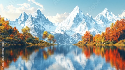 © Arti, Fototapeta premium Mountain lake, with crystal-clear water reflecting the peaks, soft natural lighting