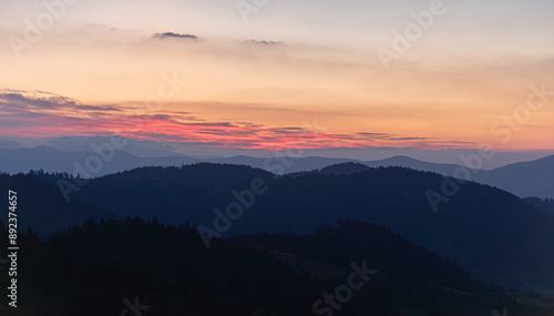 © Denis Rozhnovsky, Fototapeta premium Mountain landscape at dusk. Mountains at sunset.