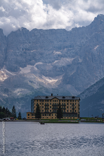 © Zimu, Fototapeta premium Mountain landscape at Lake Misurina, Dolomites, Italy.