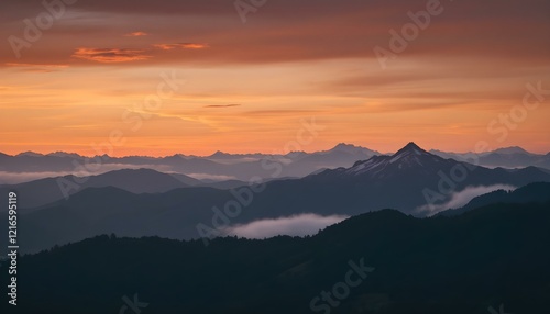 © RonaldBin, Fototapeta premium Mountain landscape at sunset