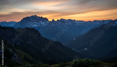 © RonaldBin, Obraz premium Mountain landscape at sunset