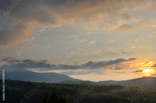 Obraz premium Mountain landscape at sunset