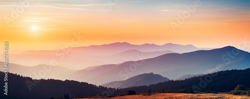 © kanesuan, Fototapeta premium Mountain landscape at sunset, Generative AI