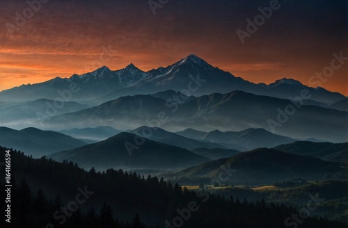 © Inspiraciones, Obraz premium mountain landscape background with sunset sky