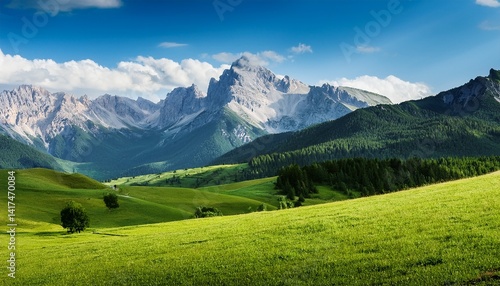 Fototapeta premium Mountain landscape green field XXXL