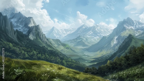 Fototapeta premium Mountain landscape nature backkgroundd illustration geenerated by AI