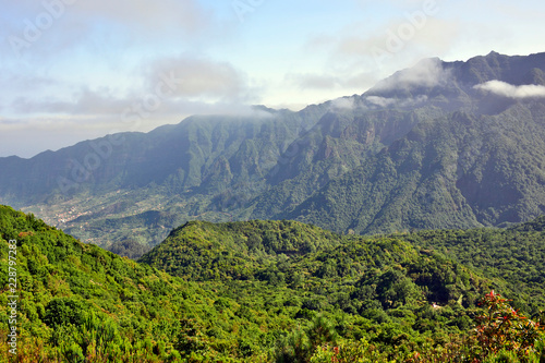 Fototapeta premium Mountain landscape of Madeira Island, view the pass Boca da Encumeada.