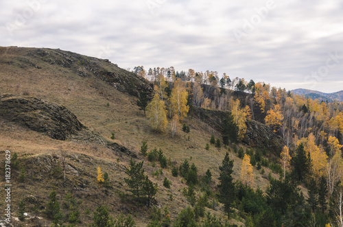 © Maksim, Fototapeta premium Mountain landscape on a cloudy autumn day in Russia, Syberia