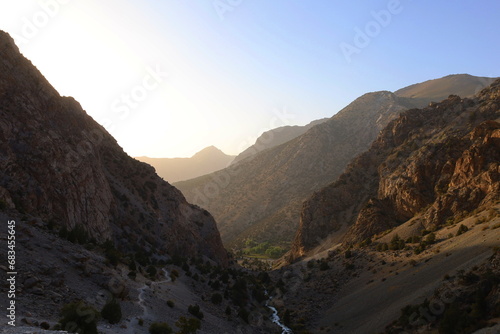 Fototapeta premium Mountain landscape on a hiking trail from Artuch tu Kulikalon lakes in Fann Mountains, Tajikistan