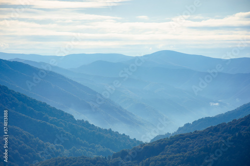 Fototapeta premium mountain landscape on a summer day. hills rolling from the valley up in to the distant ridge. view of the wonderful outdoor scenery beneath a sky with clouds
