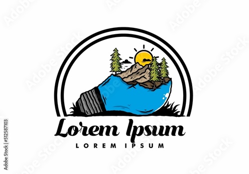 Fototapeta premium Mountain landscape on bulb lamp illustration