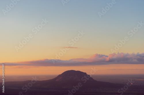 Naklejka premium Mountain Landscape. Panoramic View Of Mountains Against Sky During Sunset