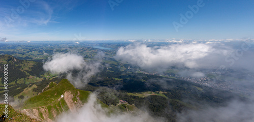 © virin, Obraz premium Mountain landscape partially in the clouds, view from Pilatus mountain peak, Lucerne