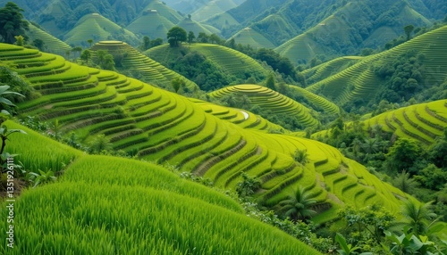 © GIFTE, Fototapeta premium Mountain landscape rice terraces from above