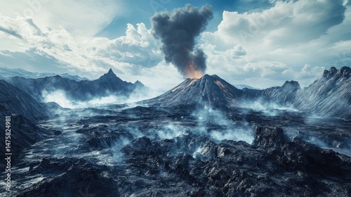 Obraz premium Mountain landscape under cloudy sky