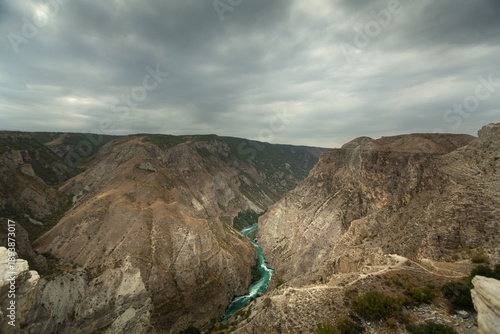 Obraz premium Mountain landscape valley panorama and elevator