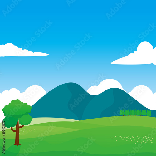 © Muhamad, Fototapeta premium Mountain landscape vector illustration. Nature landscape carton illustration.