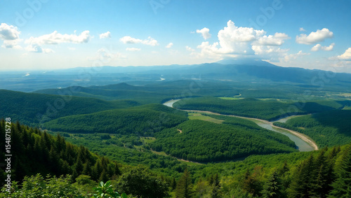 Obraz premium Mountain landscape with alpine meadow and colorful forest at sunset.