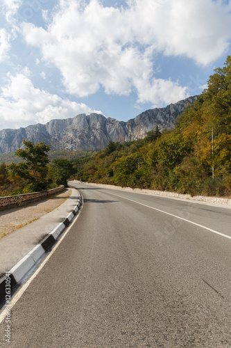 © snedorez, Naklejka premium Mountain landscape with asphalt road