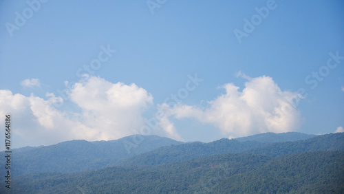 Obraz premium Mountain landscape with blue sky and white clouds. Panoramic view. Chiang Mai - Thailand