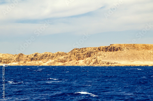 Naklejka premium Mountain landscape with blue water in the national park Ras Mohammed, Egypt.