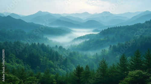 © 爆辉 七八, Fototapeta premium mountain landscape with fog