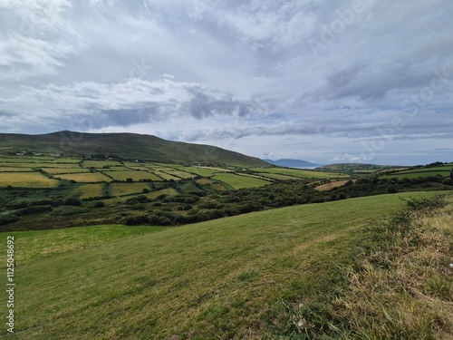 © Studio-M, Naklejka premium Mountain Landscape with Grass and Clouds in the Sky