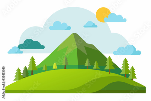 Obraz premium Mountain Landscape with Green Trees and Clouds