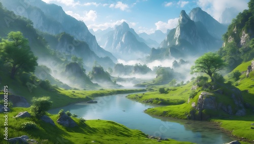 © Muhammad, Fototapeta premium mountain landscape with lake and mountains