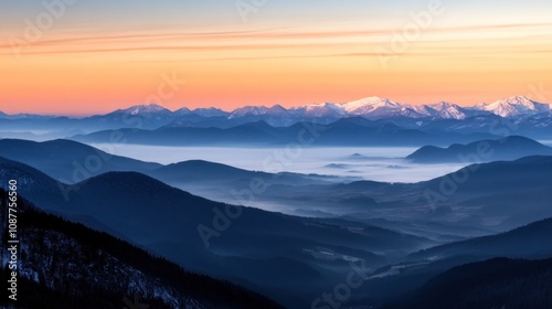 © zaen_studio, Obraz premium Mountain Landscape with Misty Valley