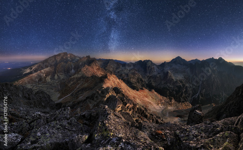 © TTstudio, Obraz premium Mountain landscape with night sky and Mliky way, Slovakia Tatras