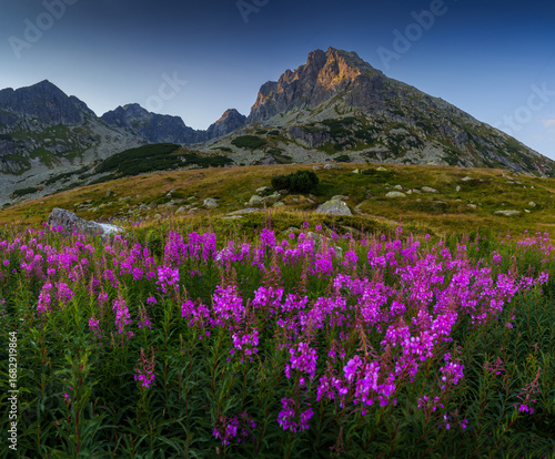 © alexugalek, Fototapeta premium Mountain Landscape with Pink Wildflowers
