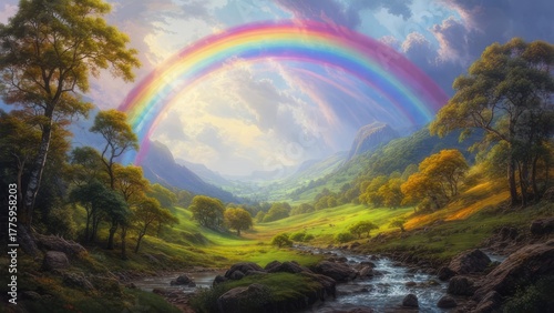 © acx, Obraz premium Mountain landscape with rainbow and stream