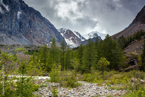 Fototapeta premium Mountain landscape with snowy peaks