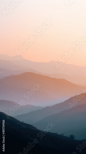 Fototapeta premium mountain landscape with sunrise and misty valleys, close-up shot, warm earthy hues, premium look, natural daylight, ample space for text, brand-safe, no logos