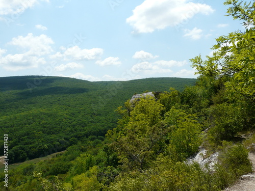 © Alexandr, Fototapeta premium mountain landscape with trees and clouds