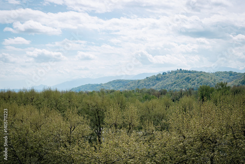 © Marika, Fototapeta premium mountain landscape with trees and clouds in pau france