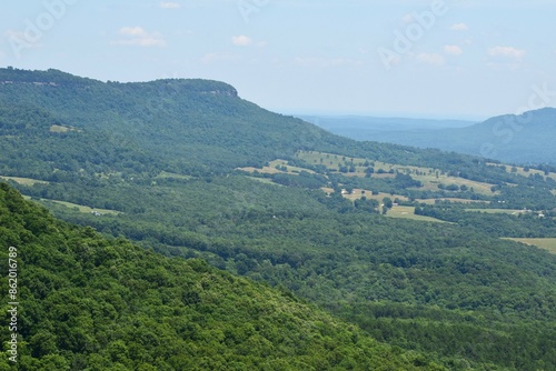 Fototapeta premium Mountain landscape with trees. Arkansas landscape. Green hills. Panorama view.