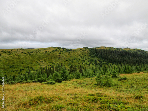 © Ivan Koliadzhyn, Fototapeta premium Mountain meadow covered in golden grass