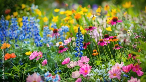 Naklejka premium Mountain meadow in sunny day. Natural summer landscape