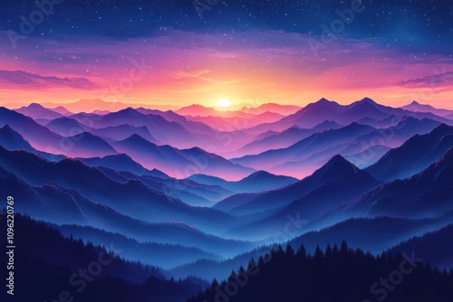 Fototapeta premium mountain night sky art, mural wallpaper showcasing vivid mountains beneath a...